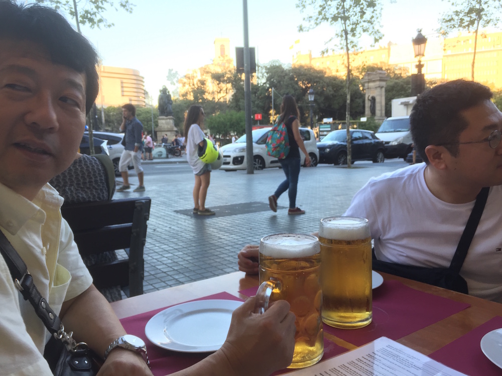 スペインの街並みをバックに・・・
